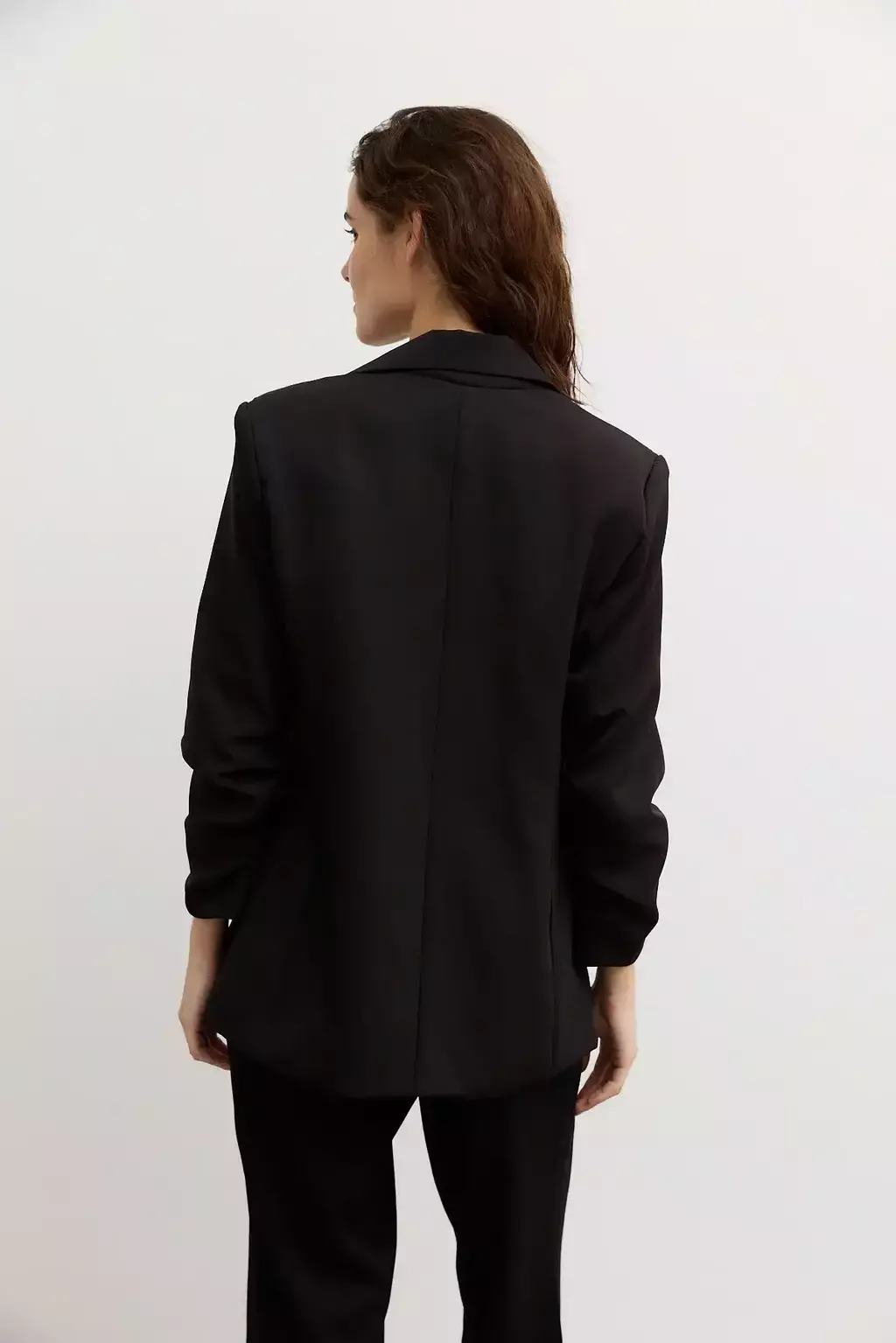 Blazer de creepe de un boton con forro y mangas arremangadas.