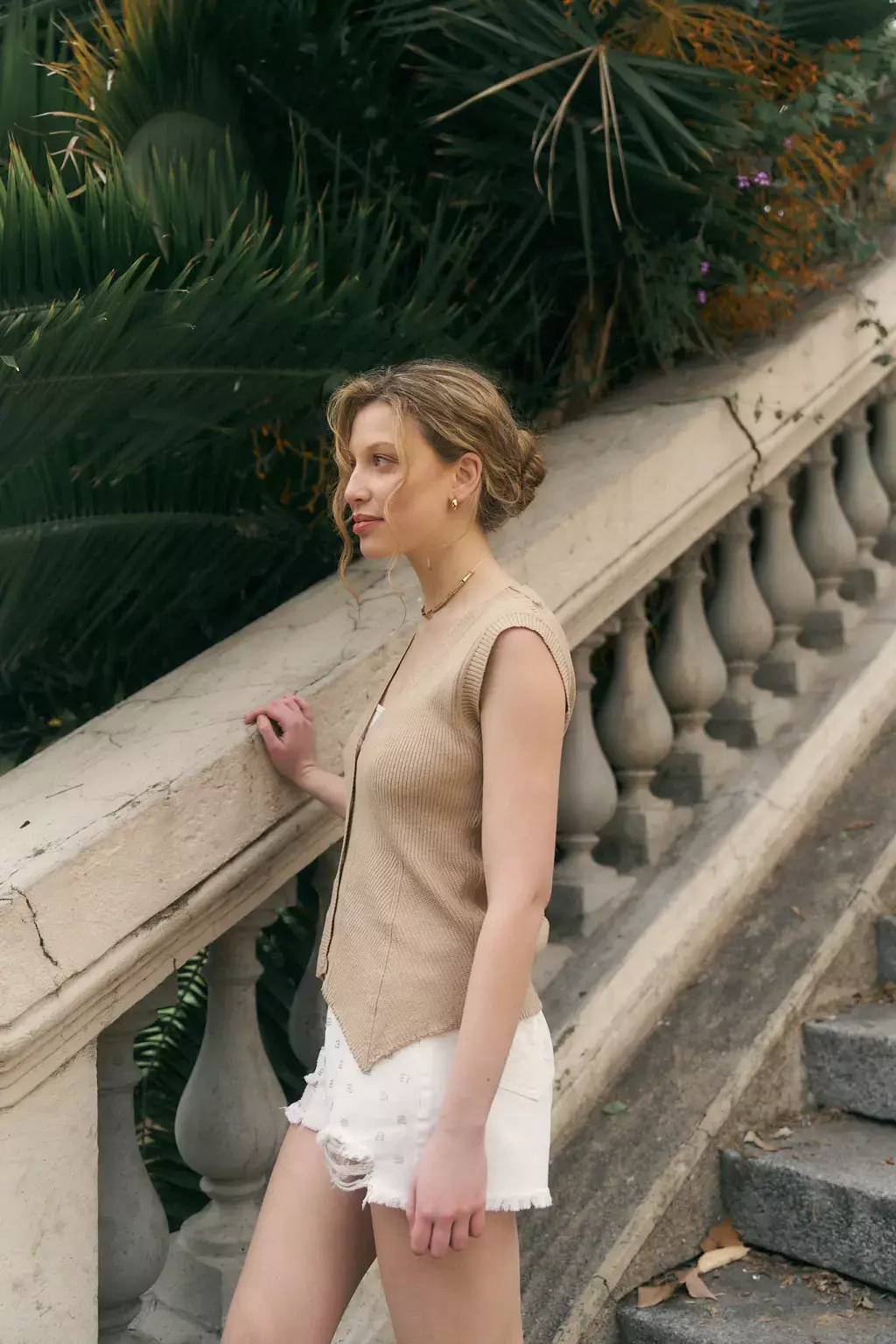 Chaleco tejido con botones y picos en delantera.